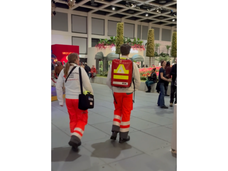 An allen zehn Messetagen, vom 16. bis 25. Januar, waren täglich rund 40 bis 50 Einsatzkräfte des DRK auf dem Messegelände im Einsatz. Während der Öffnungszeiten wurden sie durch zwei Ärztinnen oder Ärzte unterstützt. Gemeinsam sorgten sie für die medizinische Versorgung der Besucherinnen und Besucher sowie der Ausstellenden und leisteten im Bedarfsfall schnelle Hilfe.