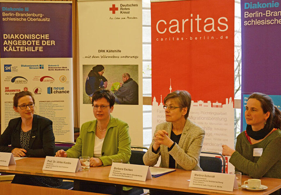 „Rund 1200 Übernachtungsplätze wurden in der Kältehilfesaison 2018/2019 bereitgestellt. Dass so viele Notübernachtungsplätze notwendig sind ist besorgniserregend, denn die Kältehilfe ist seit jeher ein Seismograf für Entwicklungen in unserer Stadt. Sie zeigt, dass das Elend in den letzten Jahren gewachsen ist", erklärte Ulrike Kostka, Direktorin des Caritasverbandes für das Erzbistum. Sie dankte auch den vielen ehrenamtlichen Helfern. "Ohne sie wäre die Berliner Kältehilfe nicht möglich", sagte Kostka. Barbara Eschen, die Direktorin des Diakonischen Werkes Berlin-Brandenburg-schlesische Oberlausitz, fordert für Frauen spezifische und angepasste Hilfen: „Die Zahl der wohnungslosen Frauen, die auf der Straße leben, ist gestiegen. Die Auslastung der Frauennotübernachtungsplätze lag bei 50,9%." Eschen wies auf der Pressekonferenz in der Frauen-Notübernachtung "Evas Obdach" in Mitte auf die erhebliche Verschärfung der Situation in Berlin hin. Sie nannte folgende Hauptprobleme:- Zunahme der Verelendung von auf der Straße lebenden Menschen.