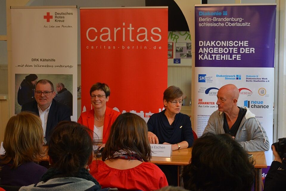 "Diese Tagesstätten für Wohnungslose sind wichtig! Sie helfen, einen Weg aus der Obdachlosigkeit zu finden. Die Tagesstätten stellen Versorgungsleistungen wie Duschen, Wäsche waschen, Essen. Ganz wichtig sind die Postfächer, die als Adresse einen Obdachlosen für Behörden erreichbar machen. Aber die Tagesstätten sind einerseits total überlastet und andererseits nicht auskömmlich finanziert! Dass hier nicht die Senatsverwaltung zuständig ist, sondern die Bezirke, macht es kompliziert", erklärte Barbara Eschen, die Direktorin der Diakonie Berlin-Brandenburg-schlesische Oberlausitz.