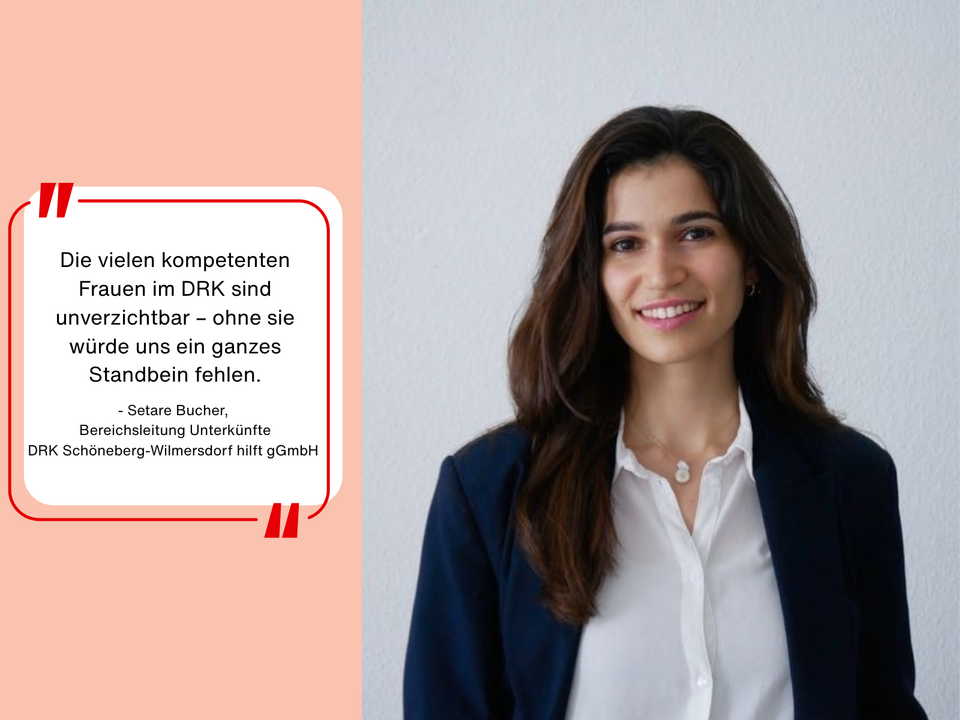 Setare arbeitet seit 2023 bei der DRK Schöneberg‑Wilmersdorf hilft gGmbH. Vom Einstieg als stellvertretende Einrichtungsleitung entwickelte sie sich zur Bereichsleitung und verantwortet heute sechs Unterkünfte für Geflüchtete.
