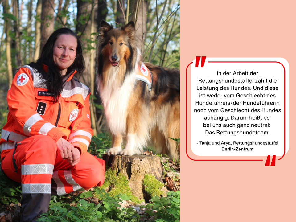Tanja ist seit 2016 gemeinsam mit ihrer Hündin Arya Teil der Rettungshundestaffel Berlin‑Zentrum. Als Flächensuchteam legen sie alle zwei Jahre eine Einsatzprüfung ab – zuletzt im April 2025 erfolgreich in Mecklenburg‑Vorpommern.