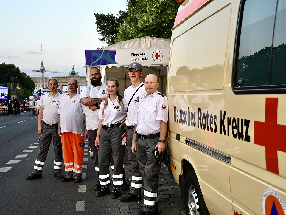Rund 1.200 Helfende der Berliner Hilfsorganisationen waren für die sanitätsdienstliche Absicherung der Teilnehmenden und der rund 330.000 Besucherinnen und Besucher im Einsatz. Etwa 100 Kräfte aus dem DRK-Landesverband Berlin, allen acht Berliner DRK-Kreisverbänden und einigen weiter entfernten DRK-Bereitschaften arbeiteten an den elf Trainings- und Wettbewerbstagen Hand in Hand mit Helferinnen und Helfern der Johanniter-Unfall-Hilfe, dem Arbeiter-Samariter-Bund, der DLRG und den Maltesern.