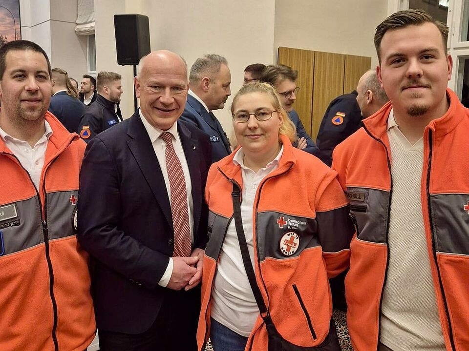 Am Mittwoch, den 14. Januar, waren rund 15 ehren- und hauptamtliche Einsatzkräfte des Berliner Roten Kreuzes zu Gast im Abgeordnetenhaus von Berlin. Anlass war die Bewältigung des zu Jahresbeginn erfolgten Anschlags auf das Berliner Stromnetz, der zu einem mehrtägigen Stromausfall im Südwesten der Stadt geführt hatte und zahlreiche Berlinerinnen und Berliner vor große Herausforderungen stellte. Viele Menschen saßen in kalten Wohnungen, suchten Schutzunterkünfte auf, während Kliniken und Pflegeeinrichtungen im Notfallbetrieb arbeiten mussten und zahlreiche Betriebe nicht produzieren konnten.